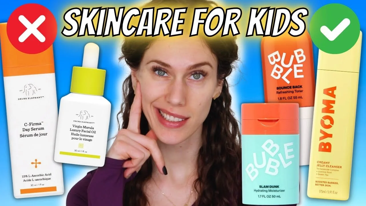 They remind parents that kids should not use anti-aging products. They say kids only need basic care like water, gentle cleansers, light moisturizer, and sunscreen